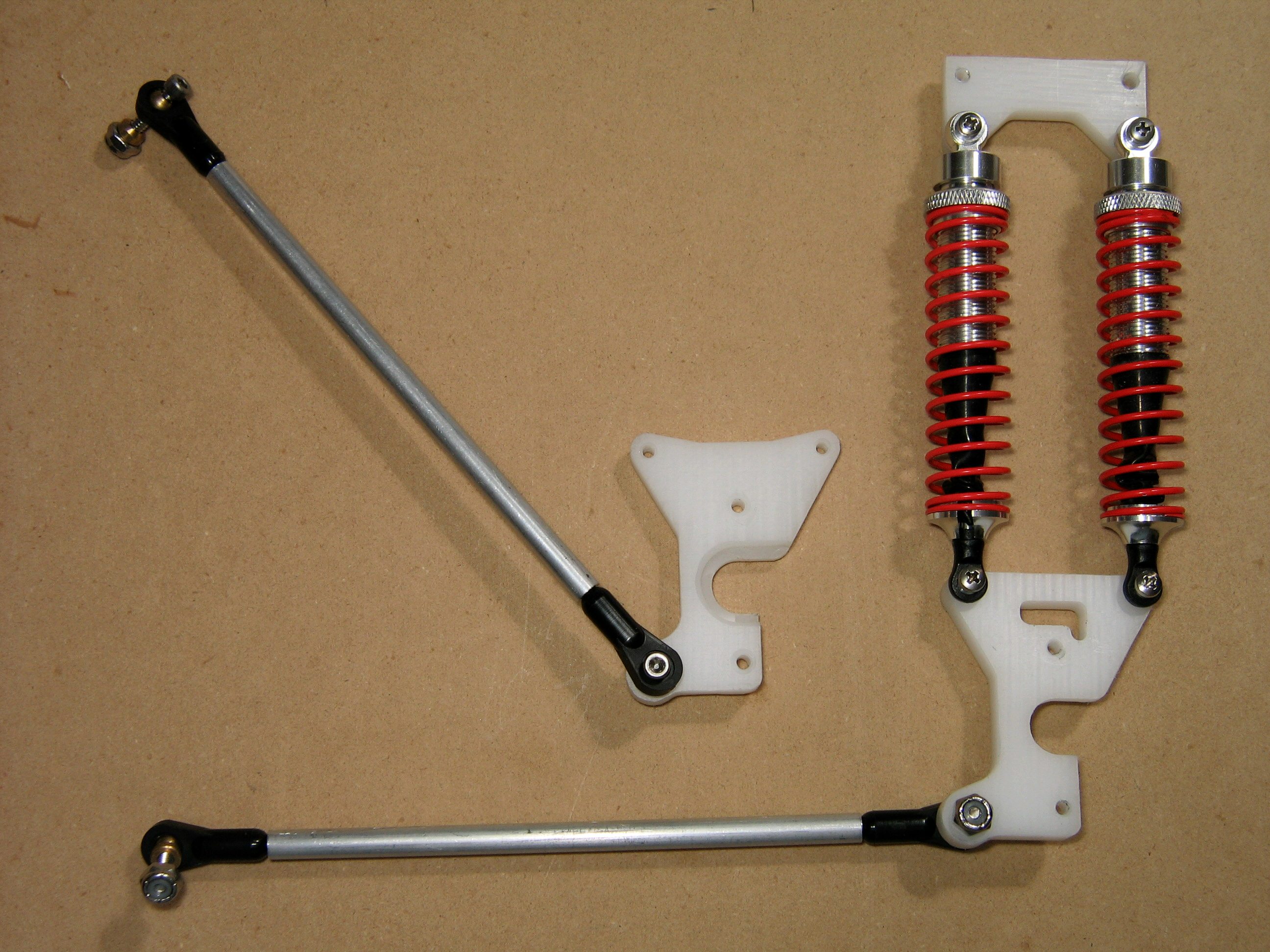 Here you can see the finished part (in the top right corner of the picture) along with some other pieces. The shocks and ball ends were purchased.