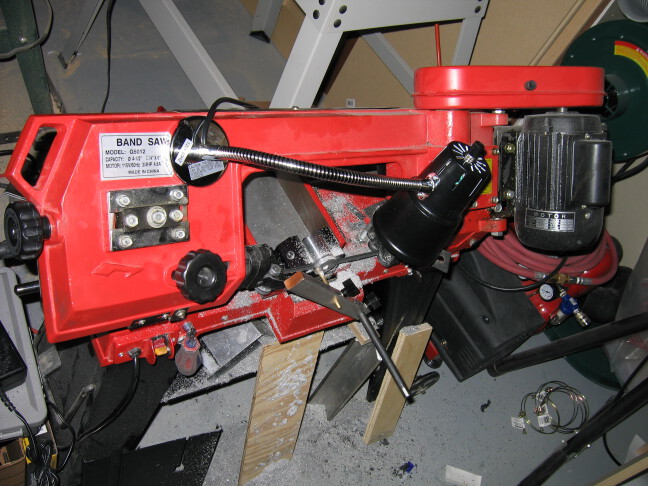 Overall photo of the bandsaw. I added a light with a magnetic base. I put a small
