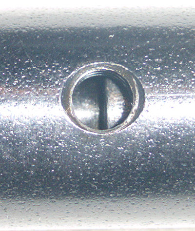 Looking through one of the screw holes in the leadscrew support, check to see if the groove in the fixed shaft is lined up with the screw hole. Here, the fixed shaft is too far to the left.