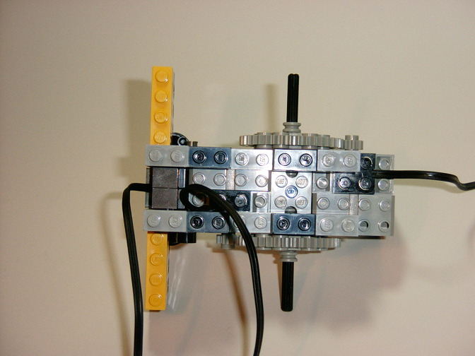 Top view of the frame. The tires were so wide, that this was the only arrangement I could come up with that still fit everything within a 10 cm square.