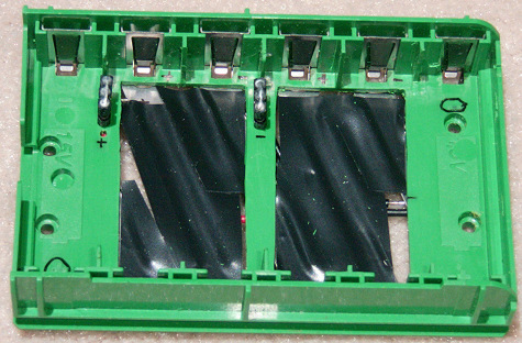 I had to cut holes in the green plastic in order to get the 9v batteries to