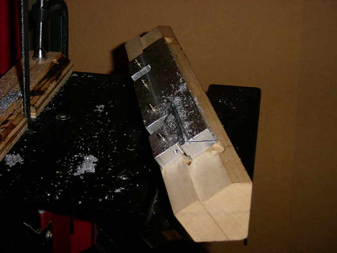 Here you can see the Jig I used to cut the rough 35 degree angle using the bandsaw, as well as the finishing cuts on the mill. It's made from two 3/4" pieces of MDF which have been glued together.