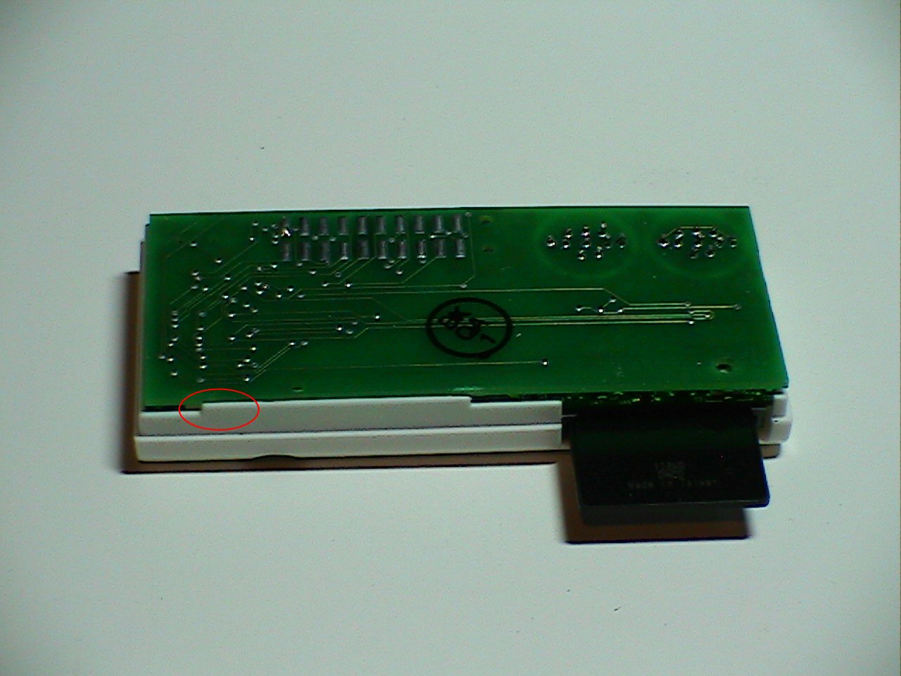 When you test fit, this white tab should touch the edge of the board,